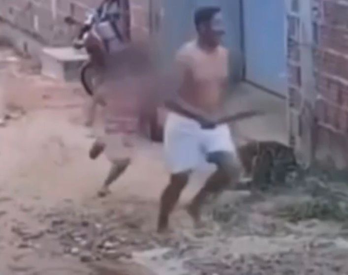 “Corre mãe”, filhos se desesperam após pai correr atrás da mãe com um facão; veja o vídeo.