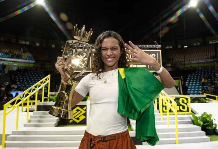 A brasileira Rayssa Leal conquistou, neste domingo, o tetracampeonato da Street League Skateboarding, a SLS, principal circuito de provas do skate mundial. Na decisão realizada no Ginásio do Ibirapuera, em São Paulo, a atleta de 17 anos levantou o público, foram quase 10 mil presentes, e deixou para trás quatro japonesas – três delas medalhistas olímpicas.