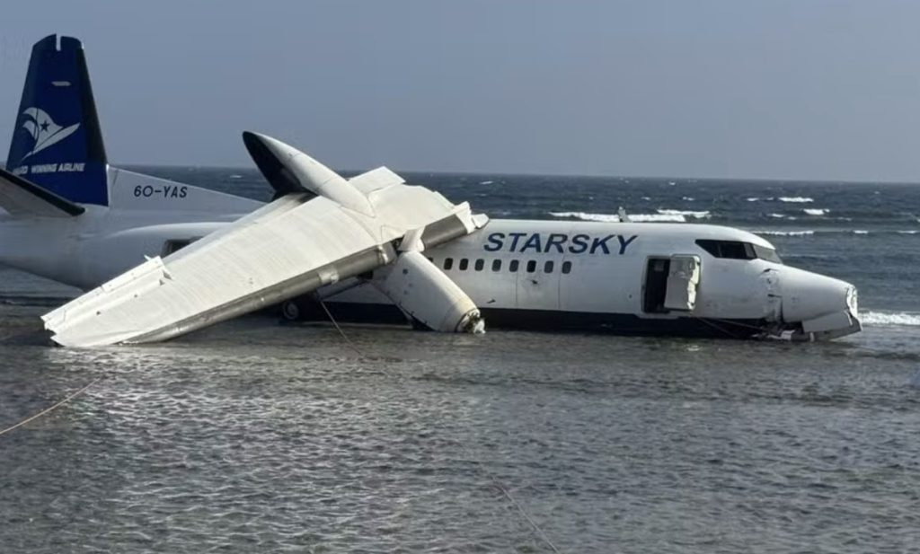 A aeronave foi forçada a retornar ao Aeroporto Internacional Aden Adde, de Mogadíscio, mas saiu da pista e só parou perto da costa.